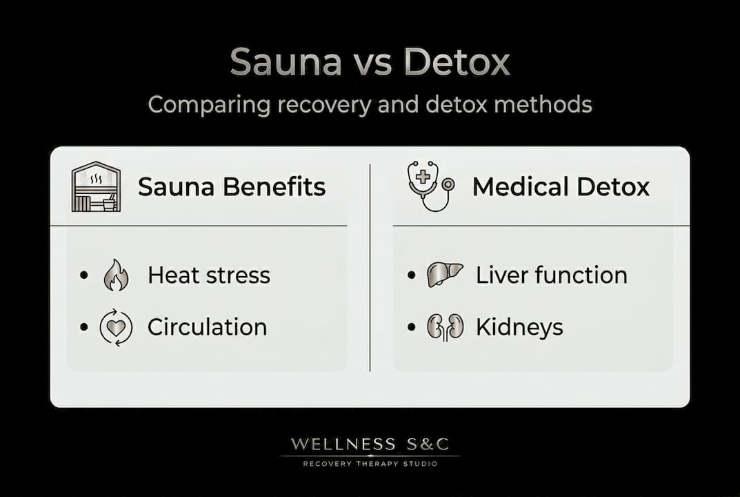 Comparing sauna detox claims to clinical detoxification methods
