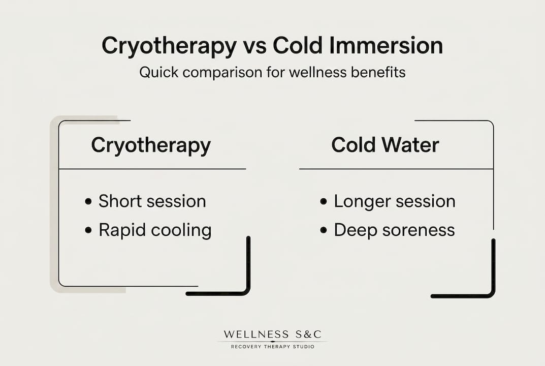 | Choose your method | Cryotherapy is fast and convenient; cold water immersion offers deeper relief—match your therapy to your goals. |